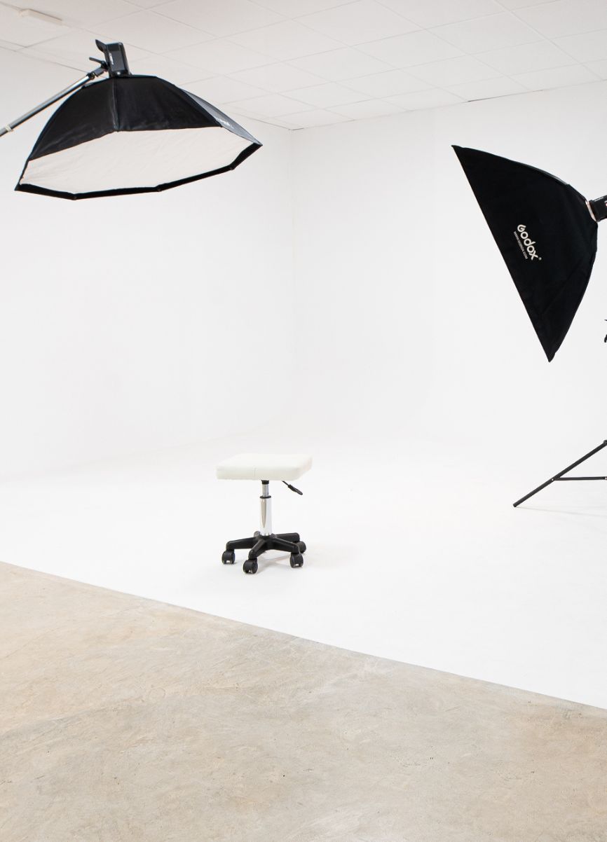 Un gran lienzo en blanco con 6 metros de ancho y 4 metros de profundidad, es ideal para todo tipo de sesiones y producciones, con iluminación adaptable y equipado con todo el equipo fotográfico que necesitas.